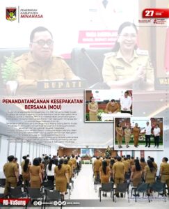 Penandatanganan MoU dilaksanakan Bupati Minahasa Robby Dondokambey, S.Si., MAP, Wakil Bupati Minahasa, Vanda Sarundajang, SS., Sekretaris Daerah, Dr. Lynda D. Watania, MM., M.Si. Bersama